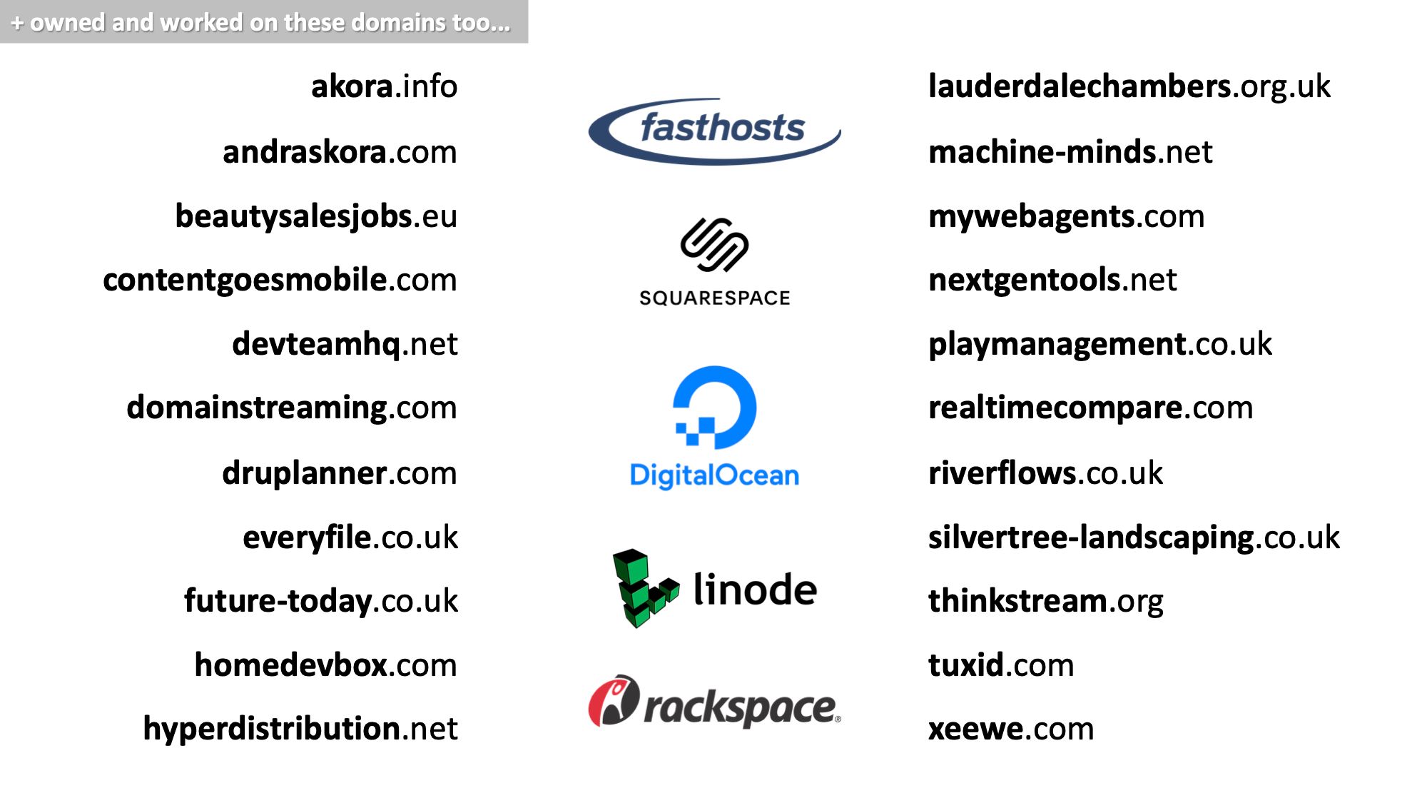 A pre-cloud era with Virtual Private Servers to rent. I worked on the above websites utilising everything from HTML/CSS/JS to Perl, PHP, and tons of scripting.