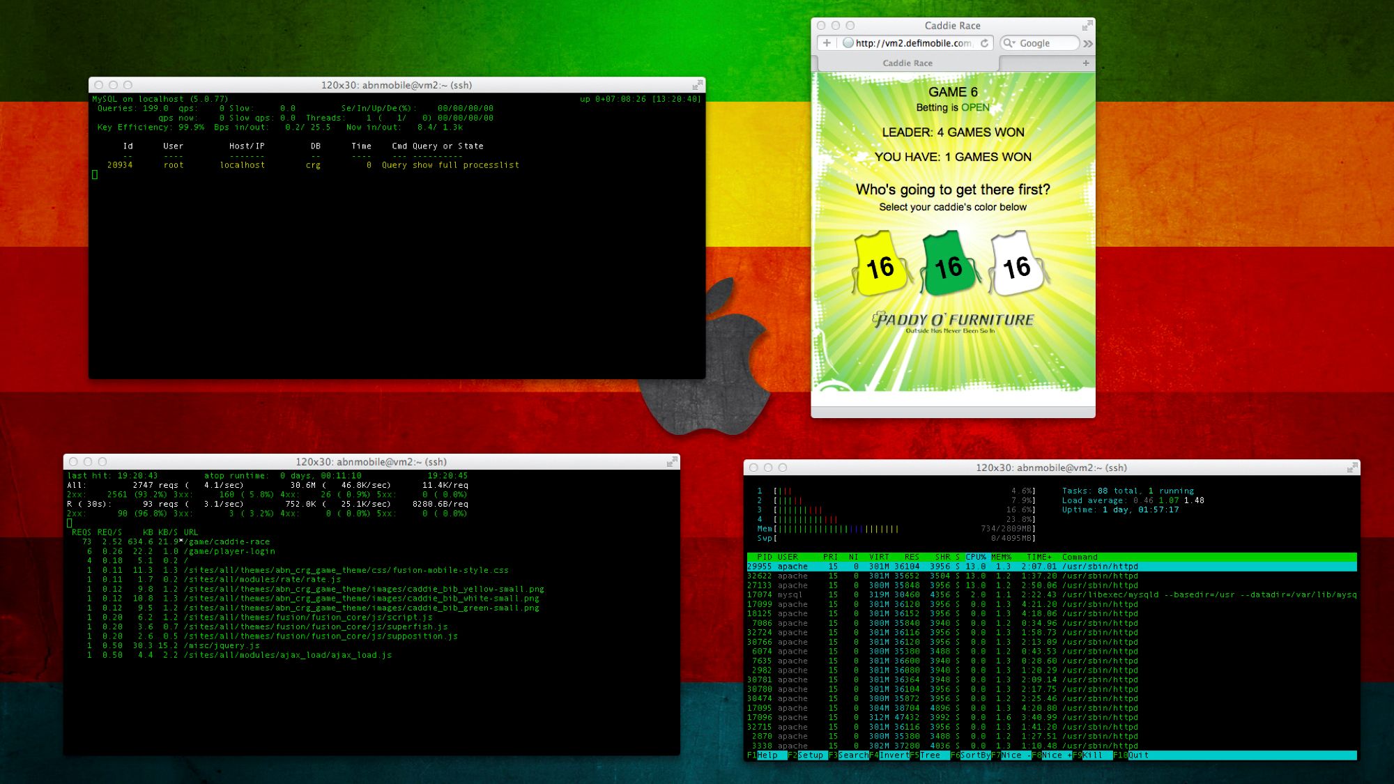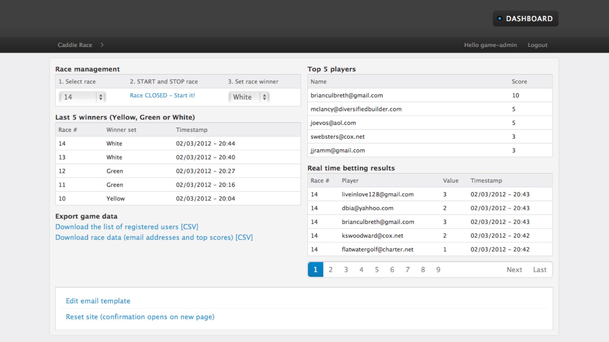 Another super-exciting and challenging gig for me was to accept a job where the client required a complete backend and frontend implementation of a web based mobile game: Caddie Race.