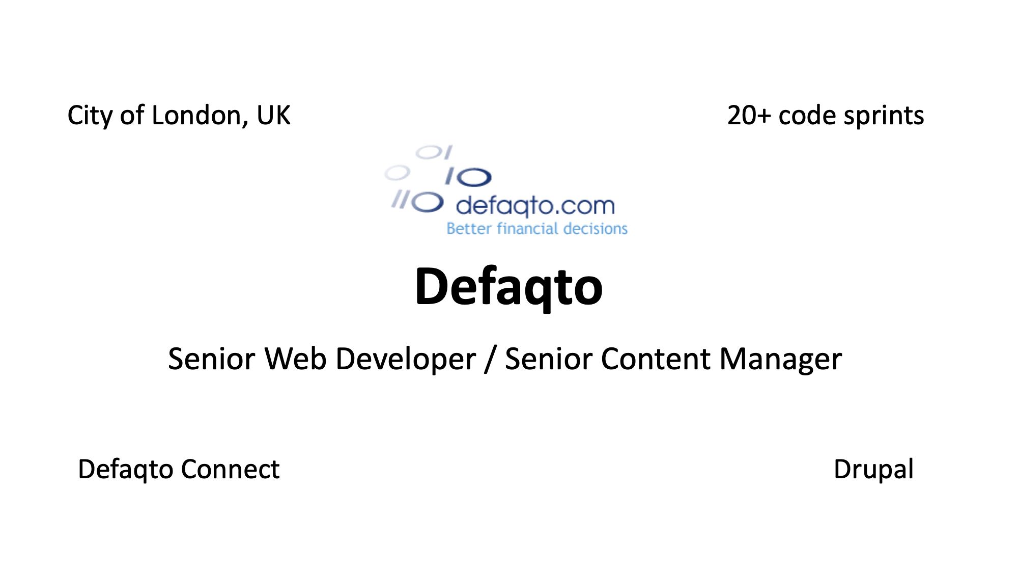 I first joined a small company called find.co.uk that was later acquired by Defaqto.